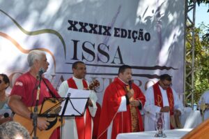 O Pe. Pablo Luiz Reis presidiu no Parque de Vaquejada nesse último sábado (28), a XXXIX Missa do Vaqueiro, em Brejinho de Nazaré – TO. A homilia foi feita pelo Pe. Edisley Batista, Coordenador Diocesano de Pastoral que frisou sobre a fé e a tradição: “O nosso povo tem uma caminhada firme na fé, com as suas tradições demonstram que o tocantinense tem suas raízes no campo”.