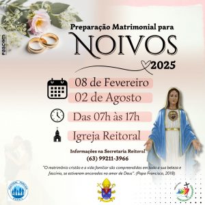 Com este desejo de bem orientar os jovens para abraçar com amor essa missão, a Igreja Reitoral Imaculado Coração de Maria está estruturando cada vez mais essa preparação para noivos, para que ao chegar diante do altar, para dar o seu SIM, os casais possam fazer de forma consciente e clara de que este é um compromisso para toda a vida, que de fato o matrimônio é uma escolha de vida.