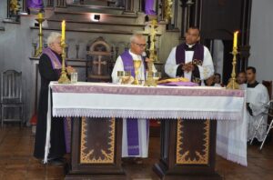 Da Praça do Centenário os fiéis seguiram para a Catedral, onde Dom José Moreira presidiu a eucaristia, ao final teve o Teatro da Paixão de Cristo pelo Grupo de Jovens Unidos pela Fé de Santa Rosa do Tocantins.