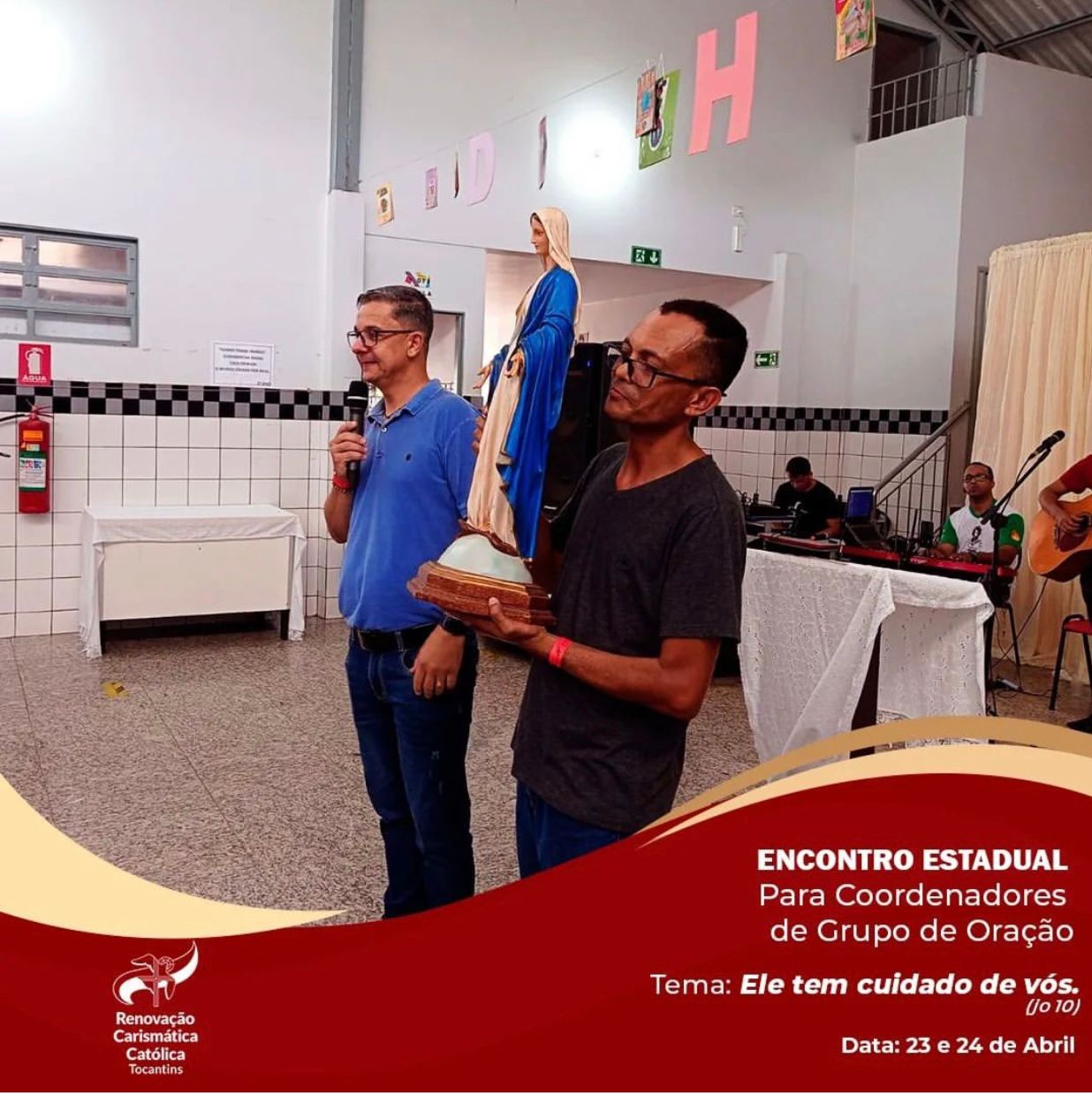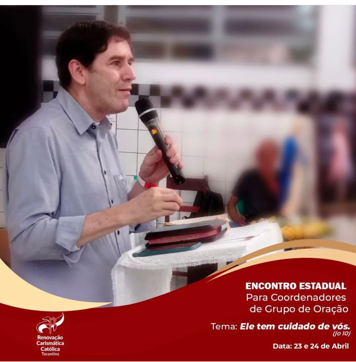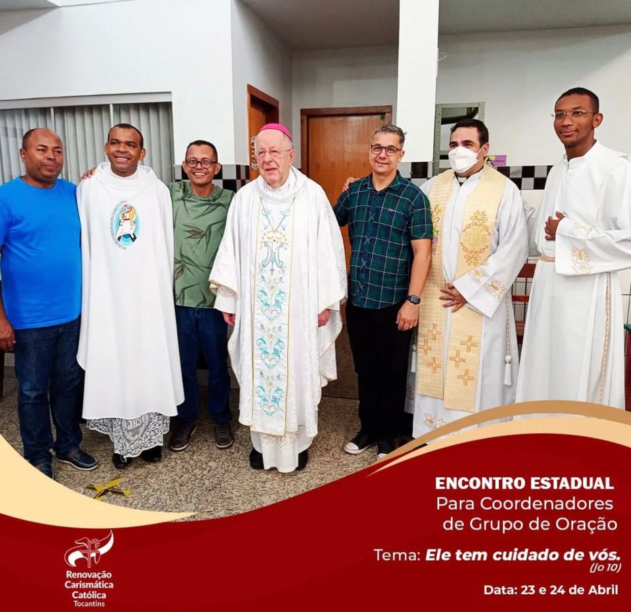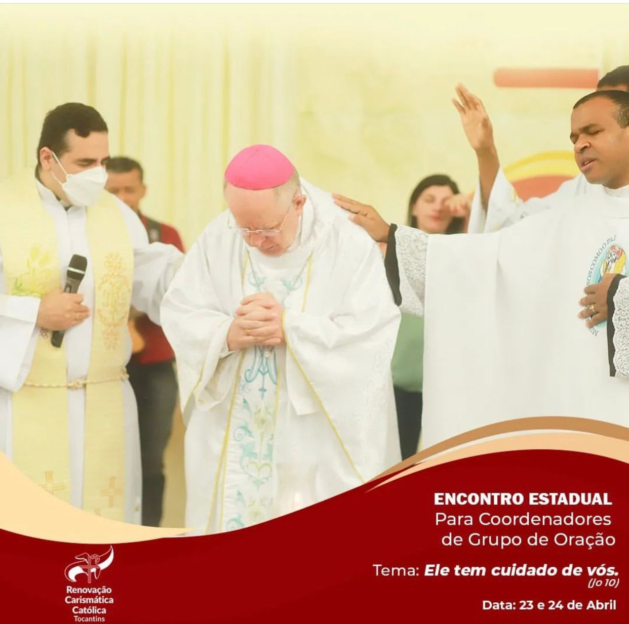 No Domingo, às 08:00 o Bispo Diocesano Dom Romualdo Matias presidiu a missa. Em entrevista à equipe da Pascom da Catedral Dom Matias falou sobre o encontro: “Que esse momento sirva de renovação espiritual para todos os grupos e fortalecimento da fé”. O Pe. Heldeir Gomes, Representante da RCC no Tocantins, frisou a participação: “É muito gratificante perceber o grande número de participantes, vocês são multiplicadores do nosso carisma”. O Pe. Eldinei Carneiro Diretor Espiritual da RCC enfatizou: “Estamos muito felizes, os grupos de oração são canais da graça de Deus, o que está acontecendo aqui é uma injeção de ânimo”. O Coordenador Estadual da RCC Reliézer Teodoro destacou a ação de Deus: “O Senhor nunca nos abandou, mesmo nas provações, Ele continua caminhando conosco, só temos gratidão por tudo”. O Coordenador Diocesano da RCC, Nelson Rodrigues pontuou sobre a alegria de sediar o encontro: “É uma alegria muito grande, esse encontro acontecer em Porto Nacional, o Senhor sempre caminha conosco”. Estiveram presentes também os coordenadores diocesanos de outras dioceses, com participantes de Tocantins e Goiás. O evento foi marcado por oração, adoração, louvor e pregação. Aproximadamente 150 pessoas participaram. Esse ano o tema do encontro foi: “Deus tem cuidado de nós” ( Jo 10). O encontro teve a cobertura midiática da RCC Tocantins e Pascom da Paróquia Catedral Nossa Sra das Mercês.