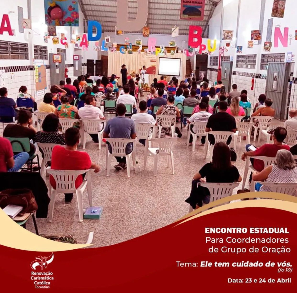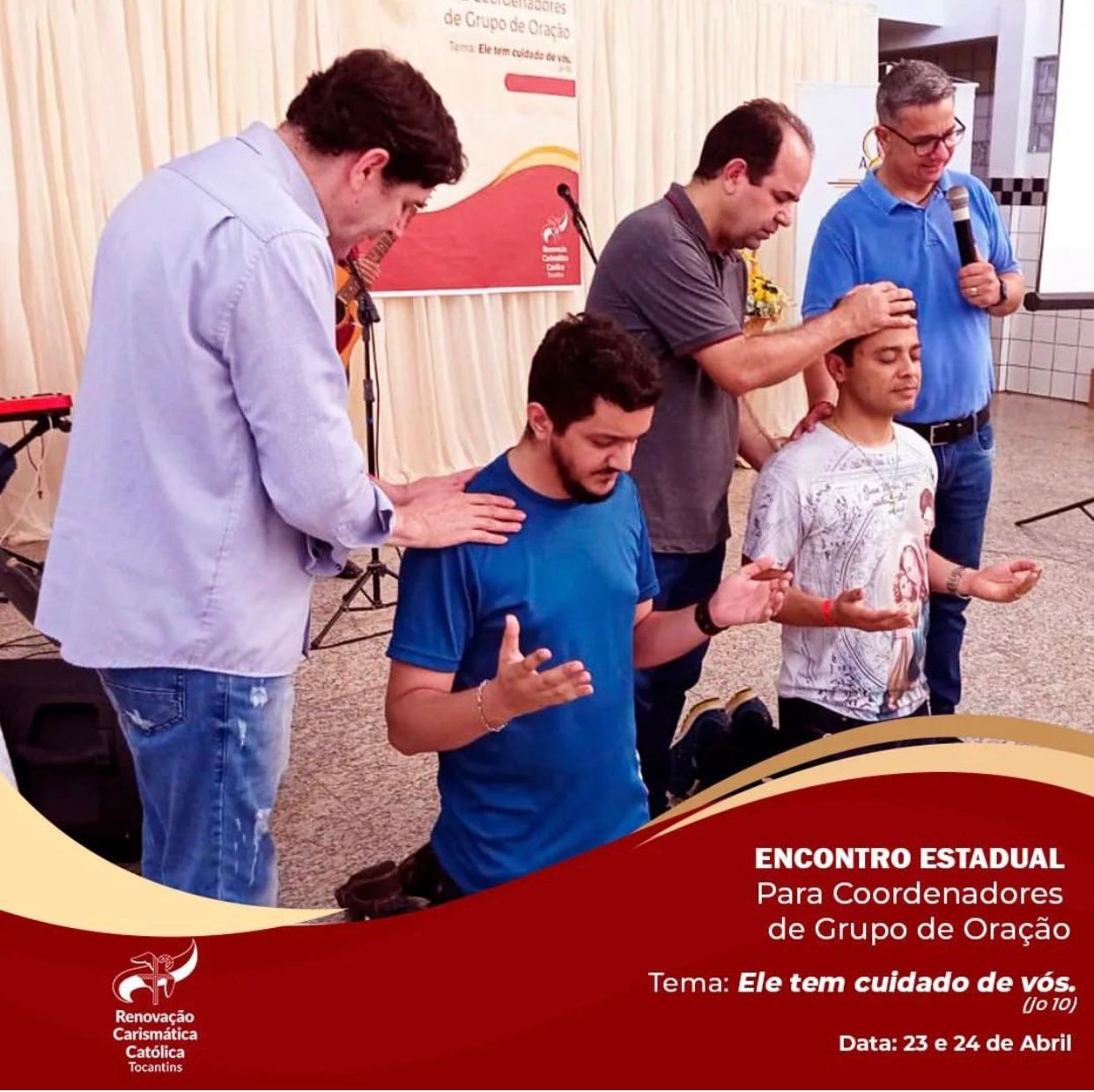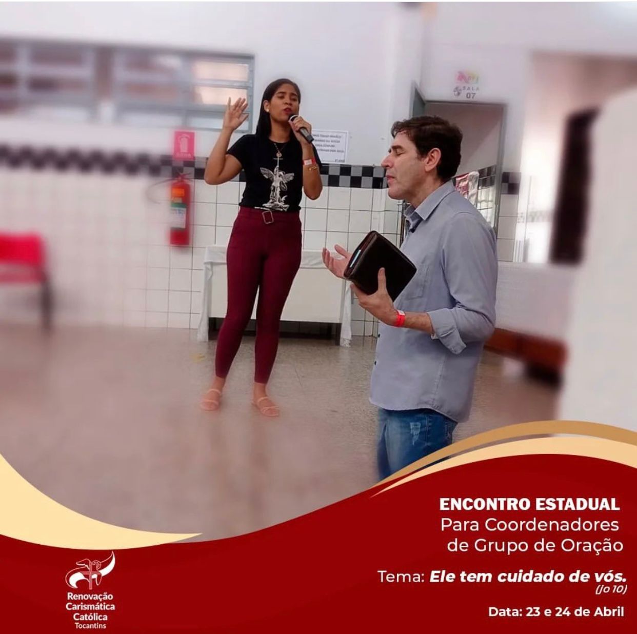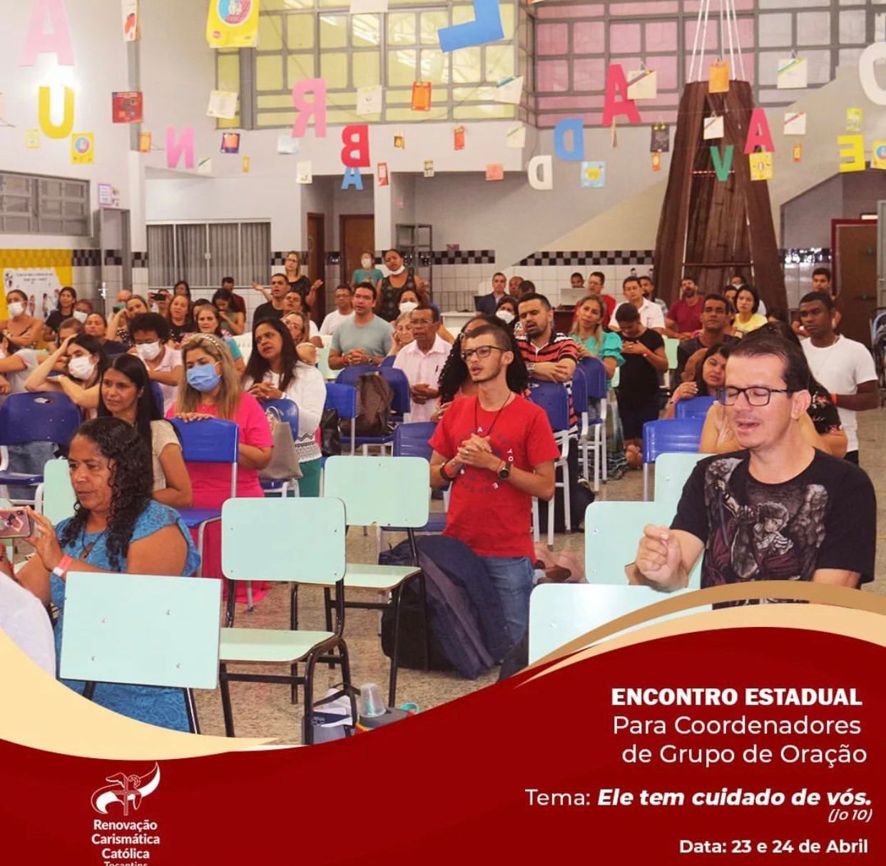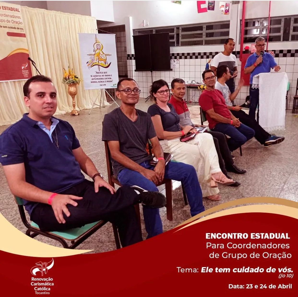 Aconteceu nos dias 23 e 24 (sábado e domingo) o Encontro Estadual de Coordenadores de Grupo de Oração da RCC, o evento foi sediado no Colégio Sagrado Coração de Jesus, em Porto Nacional – TO. Os trabalhos tiveram início com uma hora de adoração ao santíssimo sacramento presidida pelo Vigário Forâneo e Pároco da Paróquia Catedral Nossa Sra das Mercês, Pe. Eldinei Carneiro. Em seguida vieram as palestras com os seguintes temas: Pregação 1 – “Ele tem cuidado de vós” – Nelson Rodrigues Soares- Pres. Conselho Diocesano de Porto Nacional RCC.