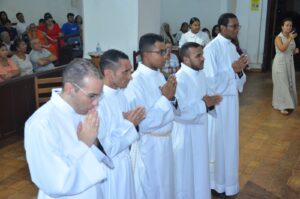 A missa foi concelebrada pelos sacerdotes Eldinei Carneiro, pároco da catedral; Rafael Ferreira, pároco de Conceição; e Pe. Douglas Aires, magnífico reitor do Seminário São José. Nossa diocese de Porto Nacional se alegra muito por este passo dado por nossos seminaristas. Continuemos a rezar pelas vocações sacerdotais e religiosas. Nossa Senhora das Mercês, rogai por nós!