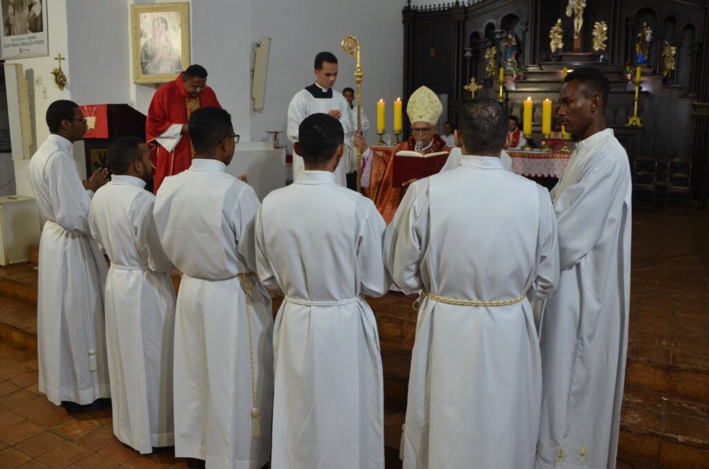 No último domingo, 30/06, na solenidade de São Pedro e São Paulo, em nossa centenária catedral diocesana, Dom José Moreira da Silva conferiu a Admissão às Ordens Sacras a cinco seminaristas de nossa diocese: Diêgo Balduino, Iago de Oliveira, Lucas Matheus, Uéverson Cirqueira e Wesley Gonçalves. Esses seminaristas estudam e residem no Seminário São José, em Mariana, Minas Gerais.