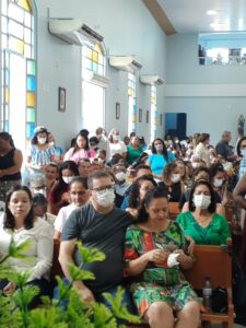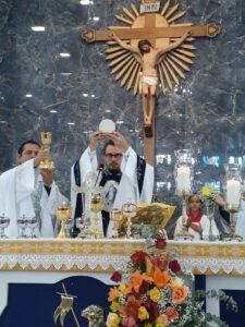 Transbordando todas as graças que Deus poderia lhe conceder, a missão de Maria é restaurar a humanidade a partir de seu Sim, pois o Emanuel, Deus conosco, é o Deus que salva a todos, aquele que viveu sua morte de cruz e que ressuscitou. Concluindo, ele citou a reação de Maria que, embora perturbada diante da saudação do anjo, ela confia. Entregues à ação do Espírito Santo, como Maria, cada um de nós nos tornamos capazes de ouvir o chamado e os colocar a serviço do reino.