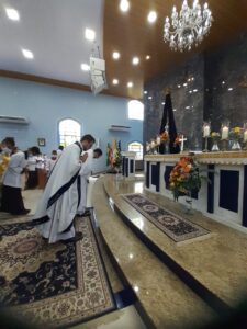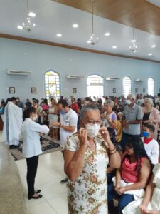 Na manhã de quinta, 08 de dezembro, a comunidade reuniu-se para celebrar a Missa Solene em Louvor a Nossa Senhora da Conceição, a qual foi presidida pelo vigário paroquial padre Thiago Zanardi e concelebrada pelo pároco padre Luiz Alberto.