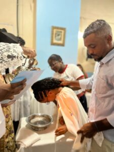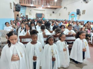 No dia seguinte, 26, a festa foi ainda mais alegre: cerca de40 crianças, jovens e adultos, tanto da catequese regular quanto da Escola Pedro Apostolo realizaram a 1ª Eucaristia, sendo que 7 deles foram batizados nesta mesma noite.