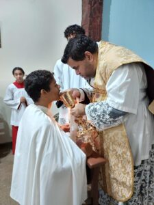 Auxiliado pelos seminaristas do propedêutico Gustavo e Lucas Daniel, Pe. Rafael e jovens da Casa de Aliança Santa Clara da Com. Sementes do Verbo e da juventude de Taipas, visitaram vários enfermos idosos, na sua maioria acamados e também pessoas que haviam se distanciado da comunidade católica da cidade, dedicada ao Divino Pai Eterno.