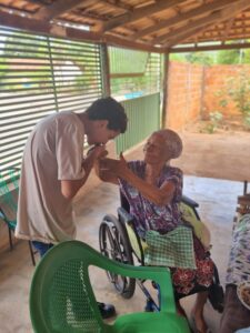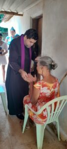 O padre levou o sacramento da Unção dos Enfermos preparando estes doentes e idosos para receberem a eucaristia enquanto os jovens levavam palavras de esperança e a partilha do Evangelho.